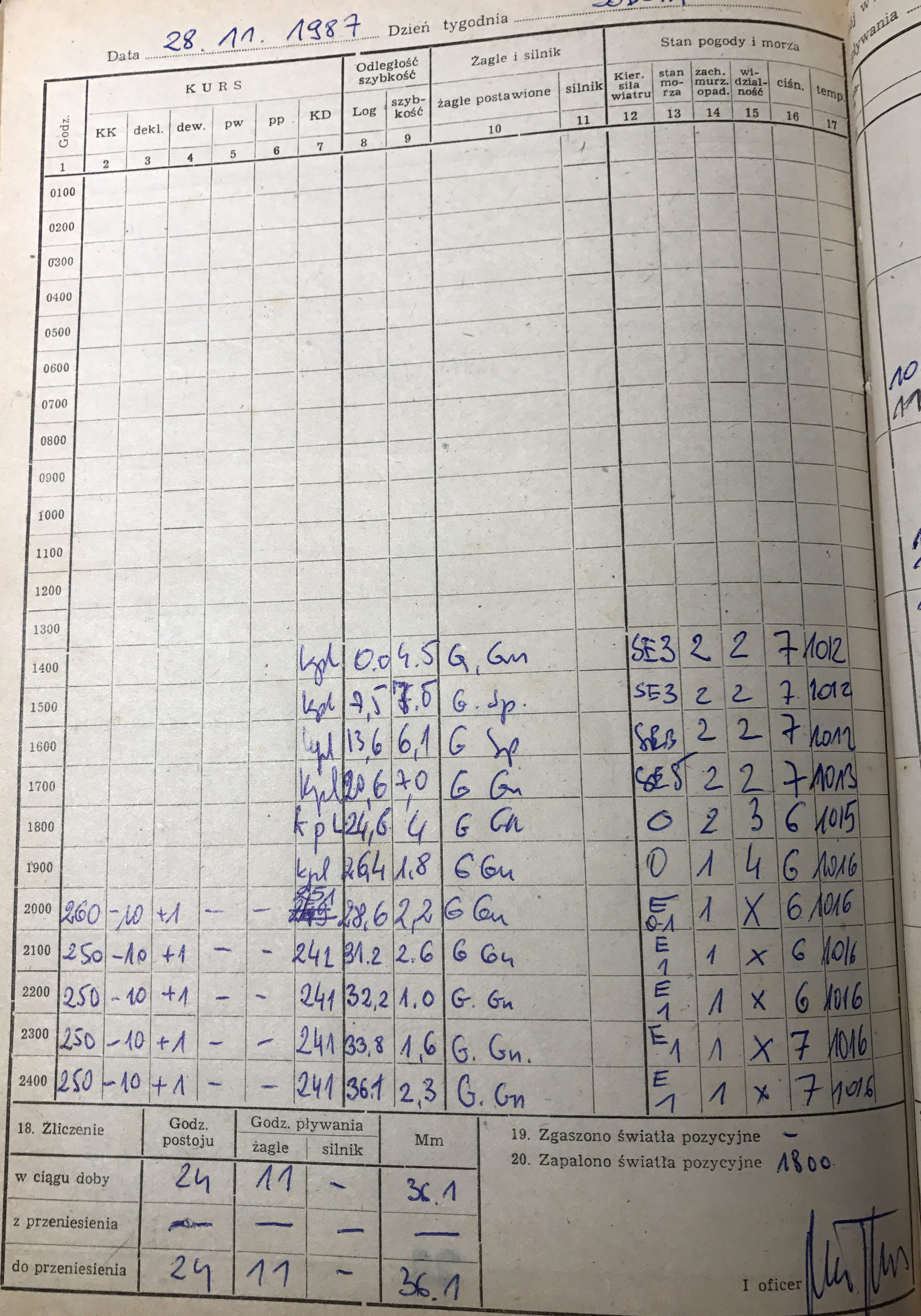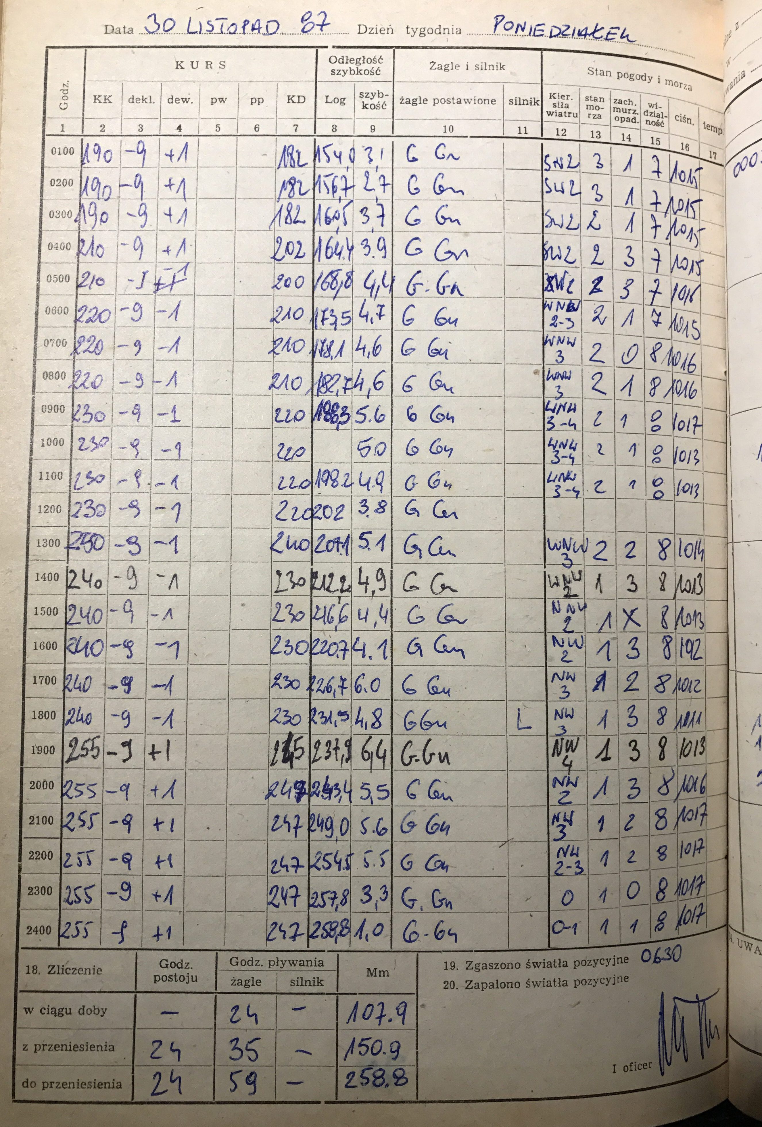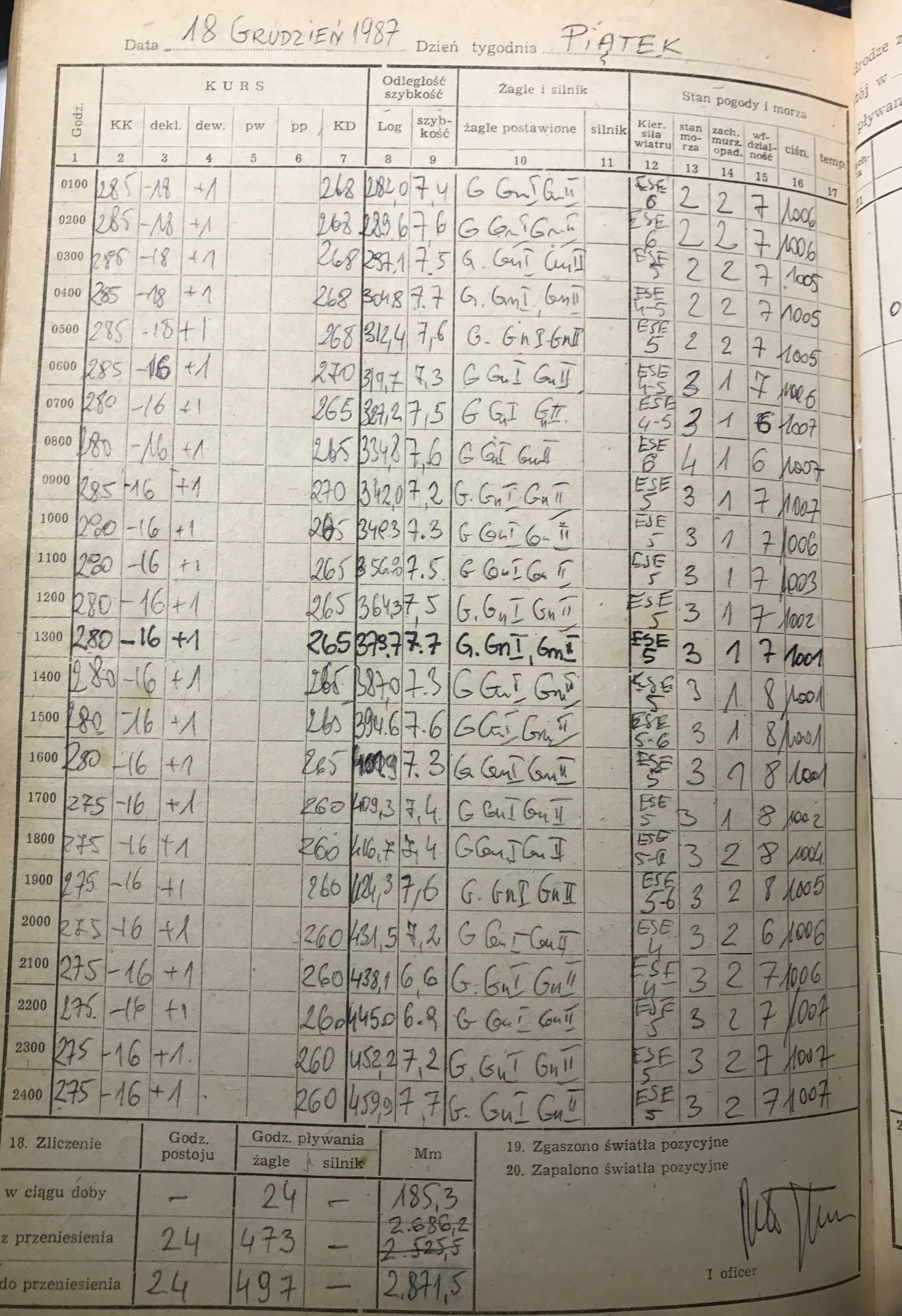 Mateńka’s first Atlantic crossing started on November 28th, 1987. On board captain: Marek Juchniewicz, 1st Officer: Marek Tuński, 2nd Officer: Stanisław Wilczyński, and crew: Nikodem Jasiński and Ryszard Męczarski.