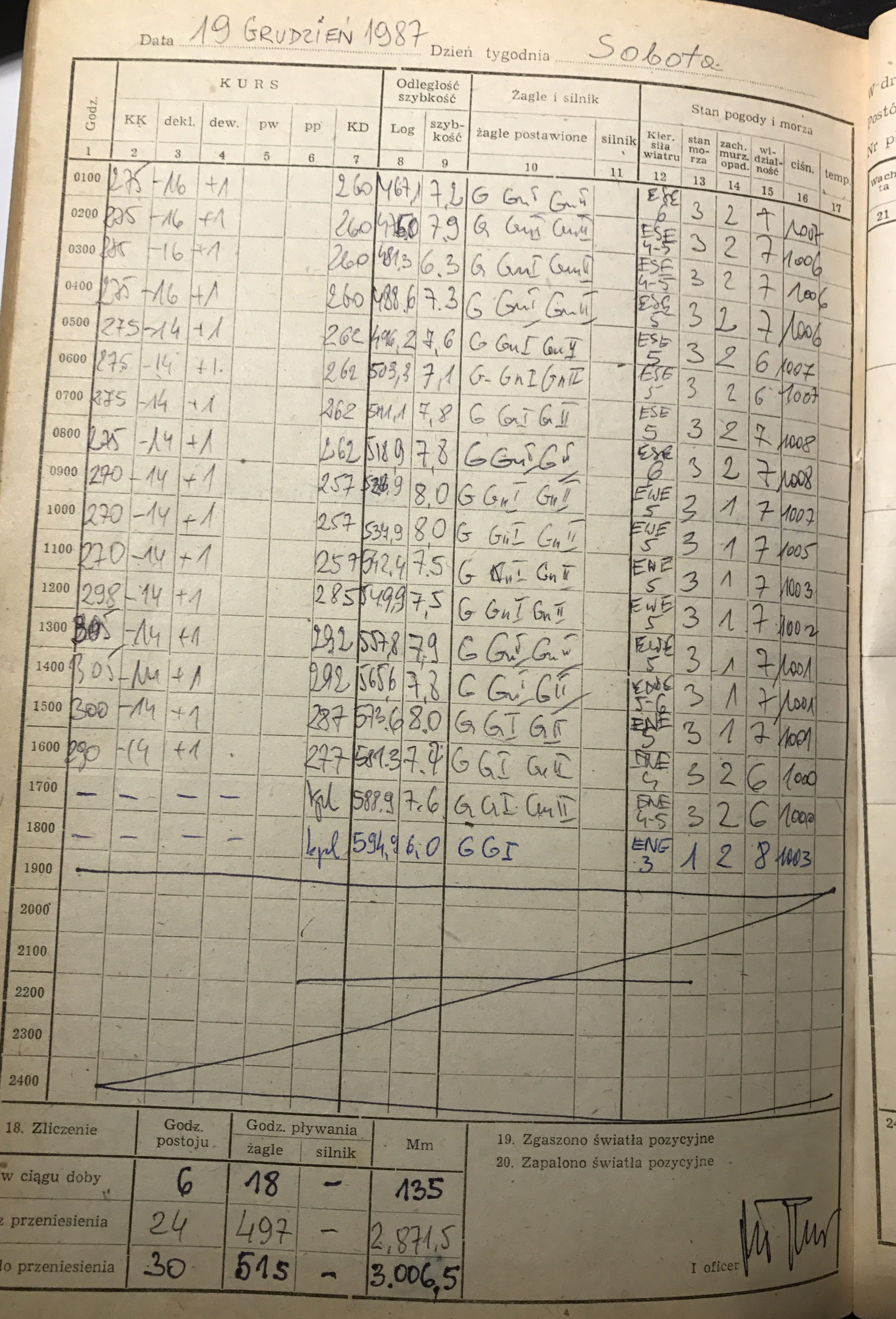 - 2.12.1987 – s/y Joy at 23°34’N 19°45’W